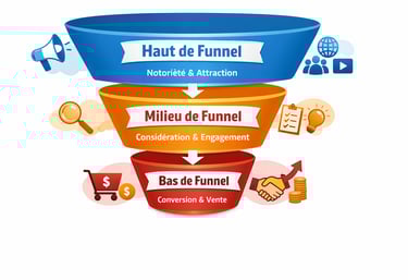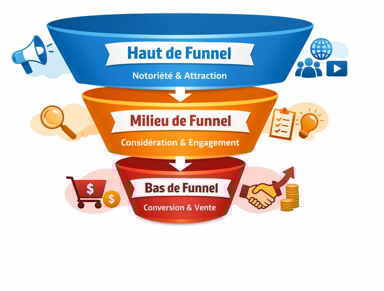 le funnel sert à visualiser le parcours client, et le tracking associé permet de mesurer, analyser et optimiser chaque étape pour que vos campagnes media buying soient plus performantes